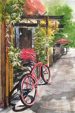 RED BIKE AT BOOTS BAKERY by Gail Johannes, SWS