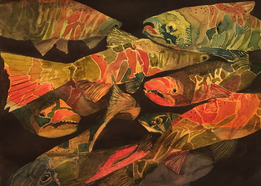 SCHOOL OF ELEVEN by Gail Johannes - 13.75"W x 9.75"H, Watercolor on paper, $425