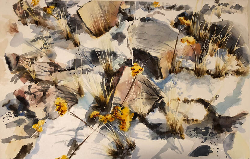 SNOWBANK by Karen Robinette - Watercolor on paper, 10"H x 14"W, $382