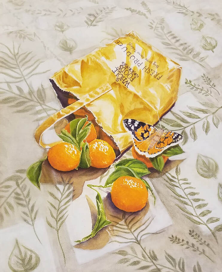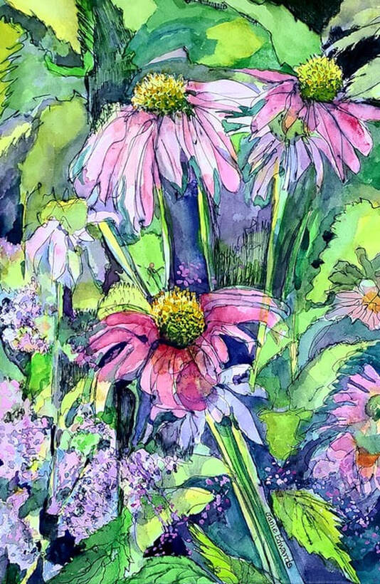 HOW TO ATTRACT A PAINTED LADY by Kitty Bendixen-park - Watercolor on paper, 13.5"W x 17"H, $850