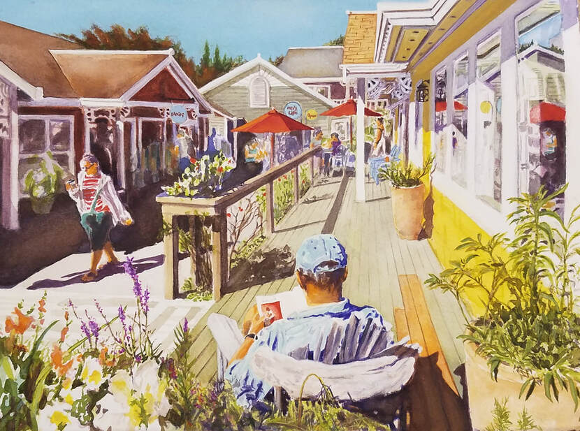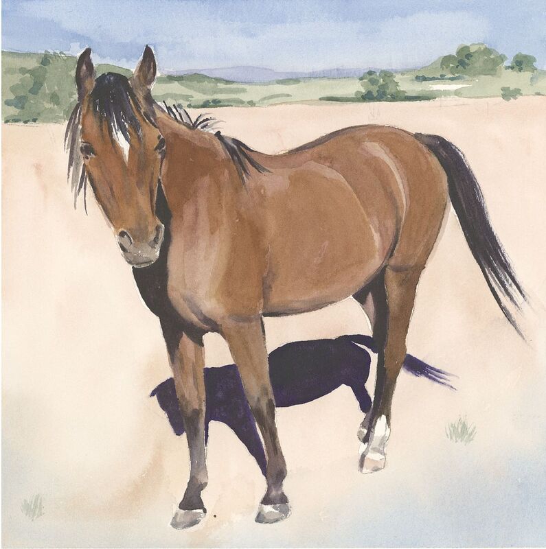 CAUGHT IN BROAD DAYLIGHT by Kitty Bendixen-park - Watercolor on paper, 14.75"W x 11"H, $850