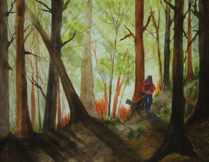 EARLY MORNING IN GLENROSE by Carrie Dugovic, Watercolor on paper, 14"W x 11"H