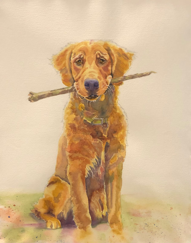 TODAY'S FAVORITE STICK by Julie Hopkins - Watercolor on paper, 15"W x 19"H