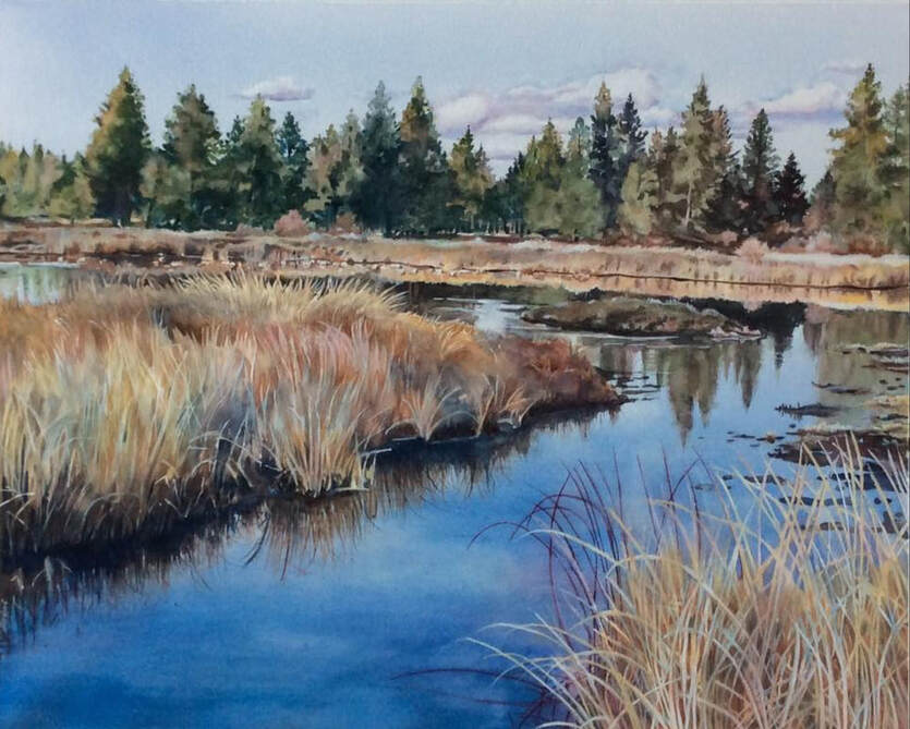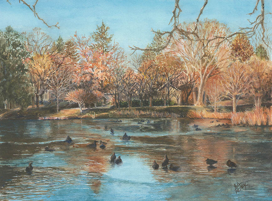CANNON HILL POND IN FALL by Gloria Fox, SWS; 14"W x 10"H