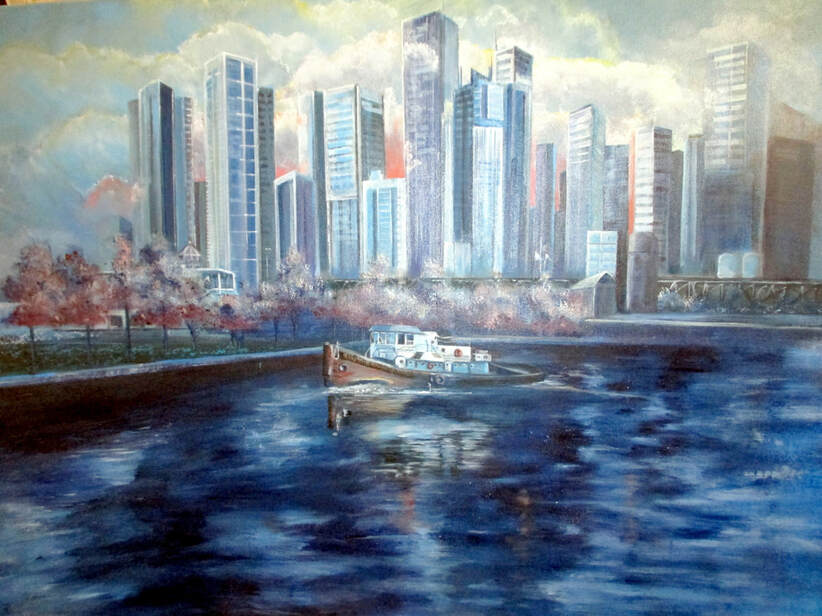 CHICAGO BLUE by Vicki West, SWS; 40"W x 30"H