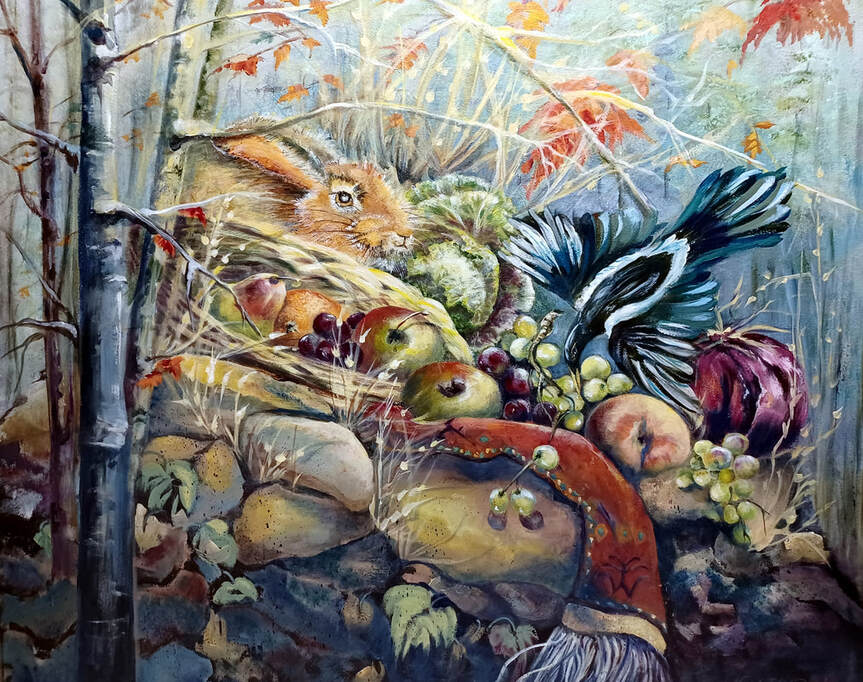 A FALL HARVEST by Joy Gruenewald, SWS; 13 3/8"W x 15 3/8"H