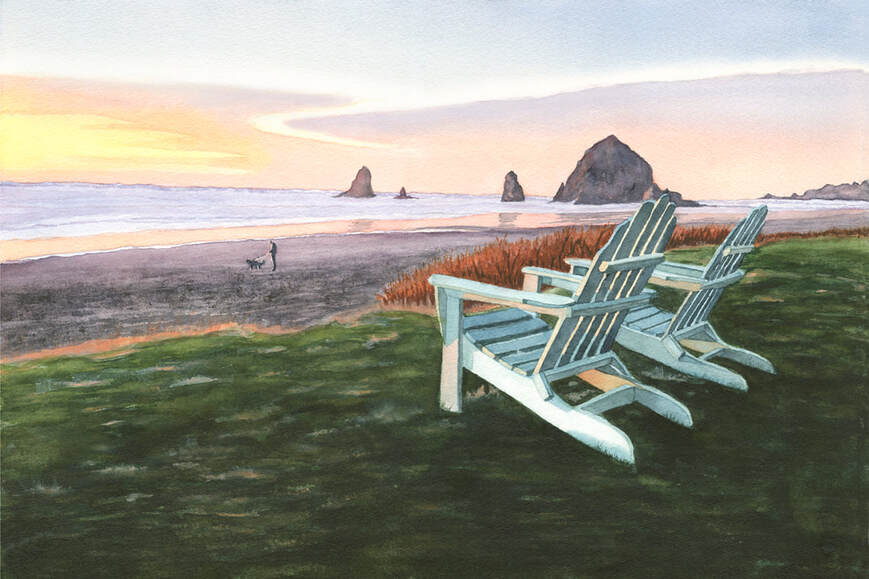 CANON BEACH SUNSET by Jeannine Fruci, SWS; 22"W x 15"H