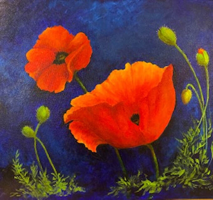 POPPY EXPLOSION by Shirley Antak, SWS; 24"W x 20"H