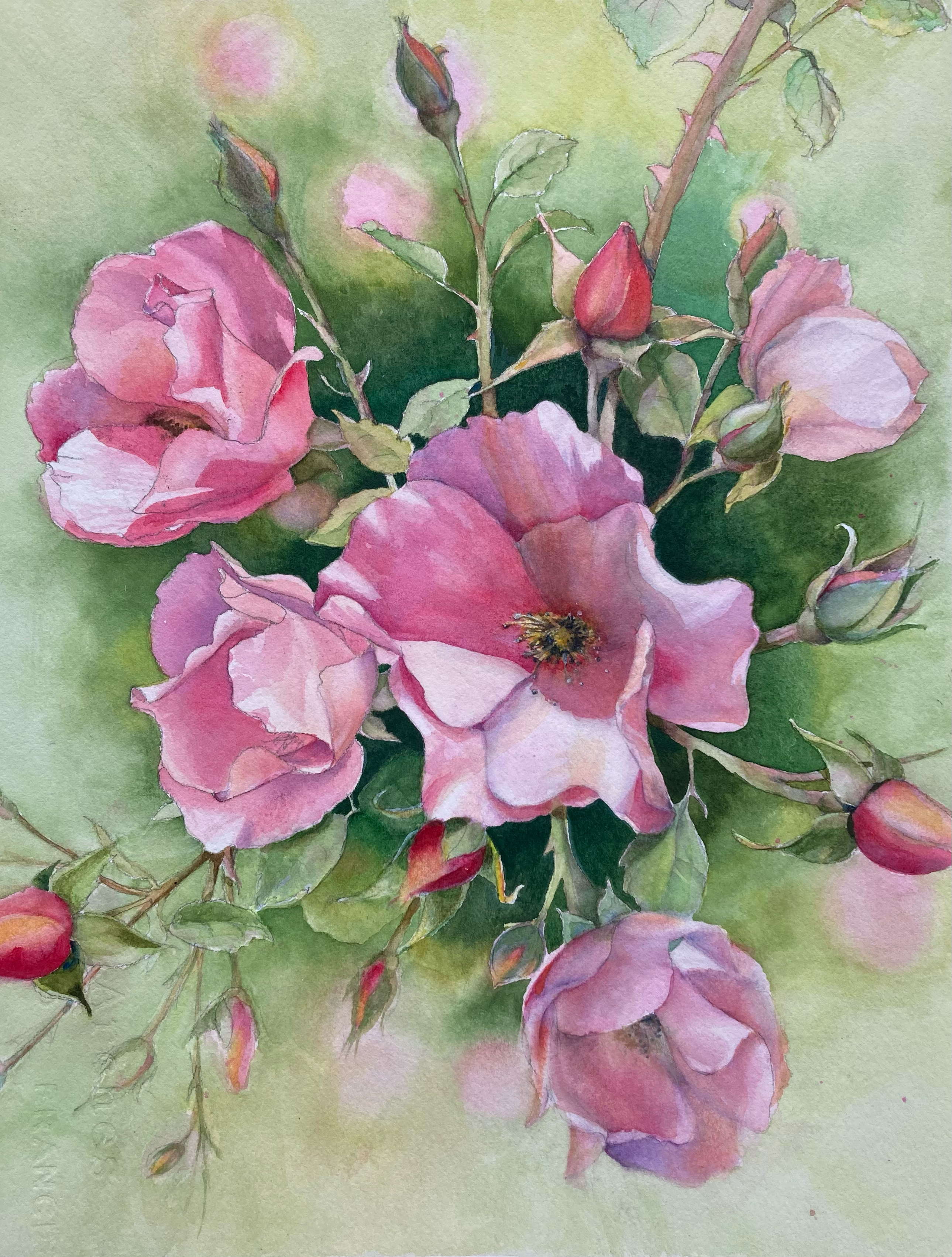 Painting the vivid details, vibrant color and dramatic contrasts, capturing the light and shadow, hue and shade, shape and form I see in the created world around me is constantly engaging. I am fascinated and amazed that brushing pigment and water on a piece of paper can reflect the incredible beauty and complexity of nature. Studying skills and techniques, designing compositions, facing fears, finding my voice, sharing with others, practicing and persevering— all these facets of learning and improving as an artist— make watercolor painting both challenging and satisfying and increase my love for this incredible medium.